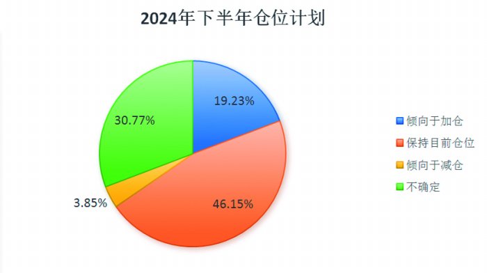 在仓位策略上,下半年倾向于保持当前仓位的基金经理数量最多,占比接近五成。另有三成的基金经理表示目前不能确定下半年仓位计划。不过,也有基金经理加减仓方向较为明确,比如有近两成的基金经理倾向于下半年加仓,另有不到4%的基金经理倾向于减仓。