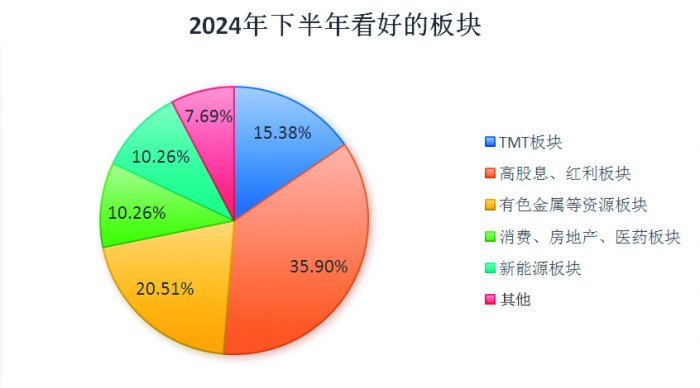 调查显示,基金经理下半年最看好三大板块。排名第一的是高股息、红利板块,投票比重超三成;排名第二的是有色金属等资源板块,投票比重为两成;第三名是TMT板块,获票比重为15%。除此之外,也有一些基金经理看好消费、房地产、医药以及新能源板块。